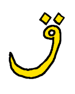 To distinguish it from fe ف, remember that qaf ق is more rotated than the hook of fe, that’s why it’s a claw!